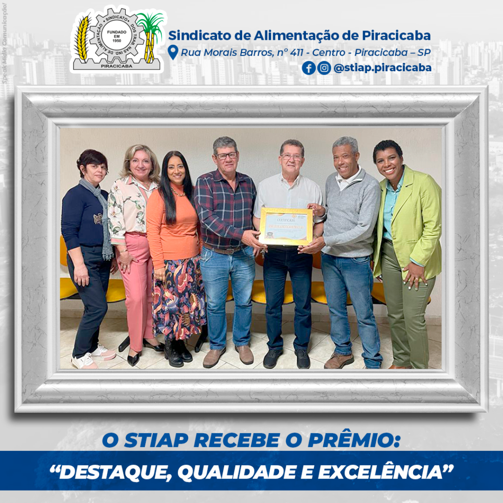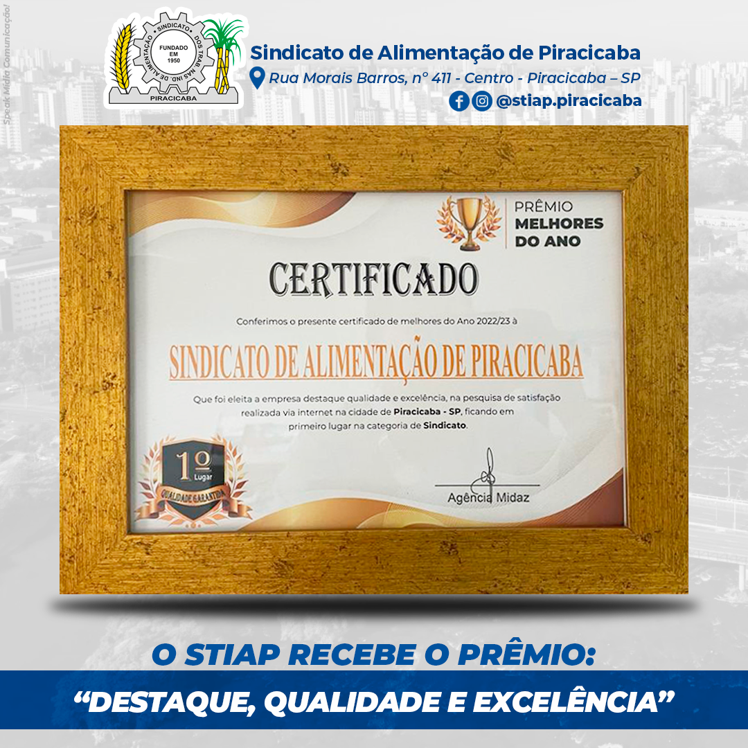 No início deste ano através da Agência de Publicidade Midaz, foi realizada uma pesquisa para eleger os melhores do ano de 2022 em diversos seguimentos através de votação via Instagram, onde o Sindicato de Alimentação de Piracicaba e Região foi eleito o Sindicato “Destaque, Qualidade e Excelência”, na pesquisa de satisfação realizada via internet na cidade de Piracicaba-SP, através do perfil @melhoresdoanopiracicaba.sp, ficando em 1º Lugar na categoria de SINDICATO.